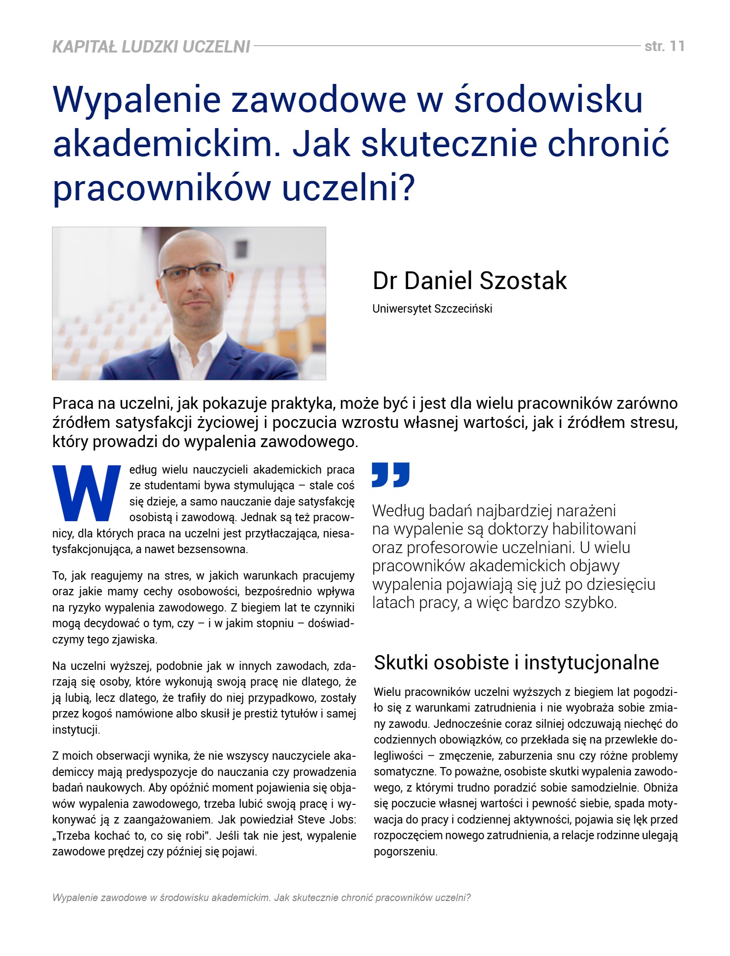 Wypalenie zawodowe w środowisku akademickim. Jak chronić pracowników uczelni? – Dr Daniel Szostak