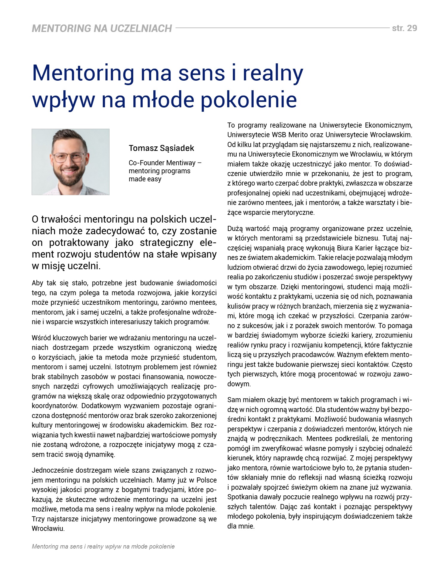MENTORING NA UCZELNIACH